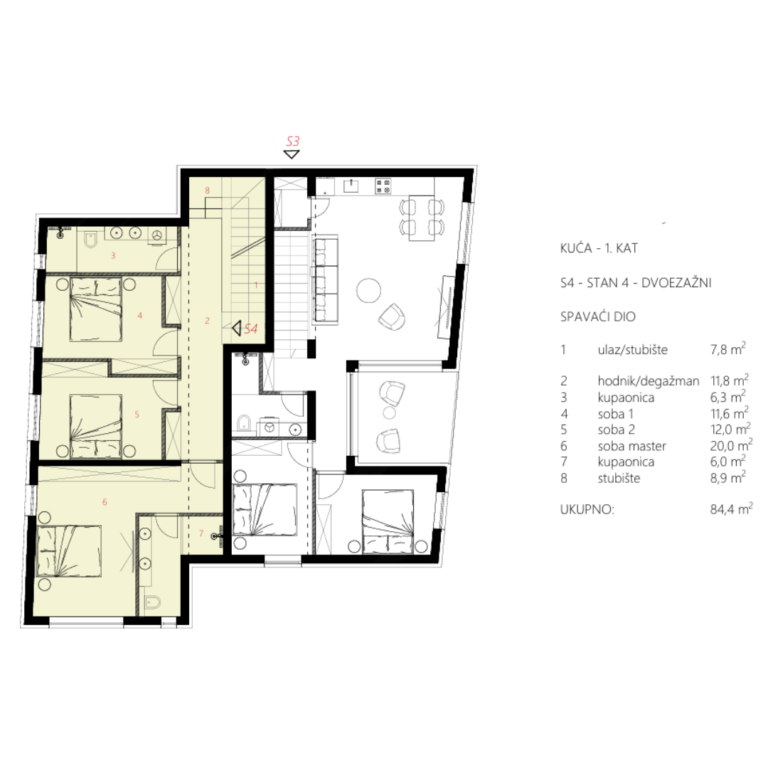 - Celkem: 84,4 m²