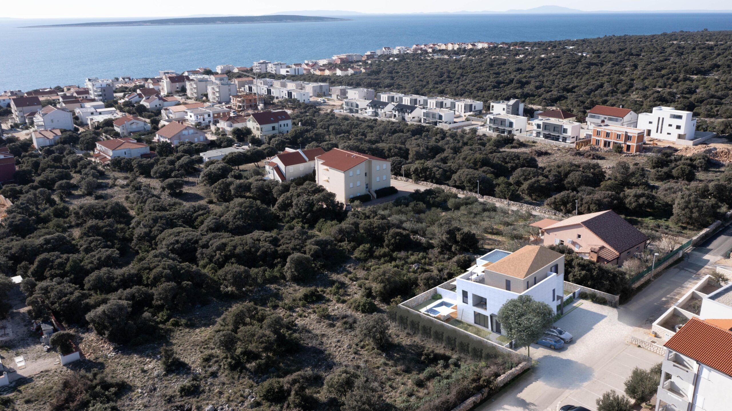 Byt se nachází v Mandre - prestižní lokalitě na ostrově Pag, známé svým čistým mořem, udržovanými plážemi a klidnou atmosférou. Veškerá občanská vybavenost (pláž, obchody, restaurace) je dostupná pěšky a výhled sahá směrem k otevřenému moři a ostrovům Zadarského souostroví.