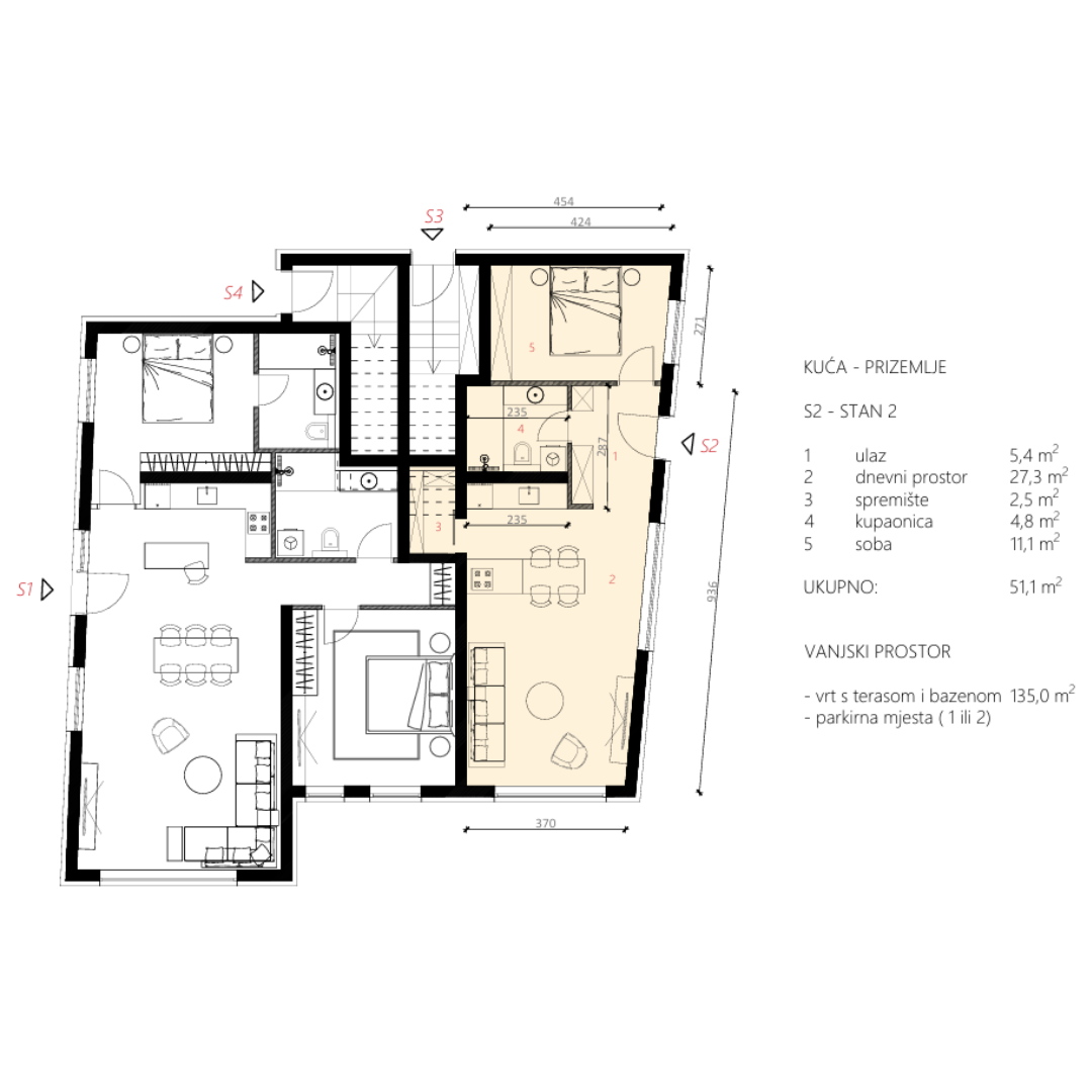 • Soukromý bazén - přímý vstup z obývacího pokoje