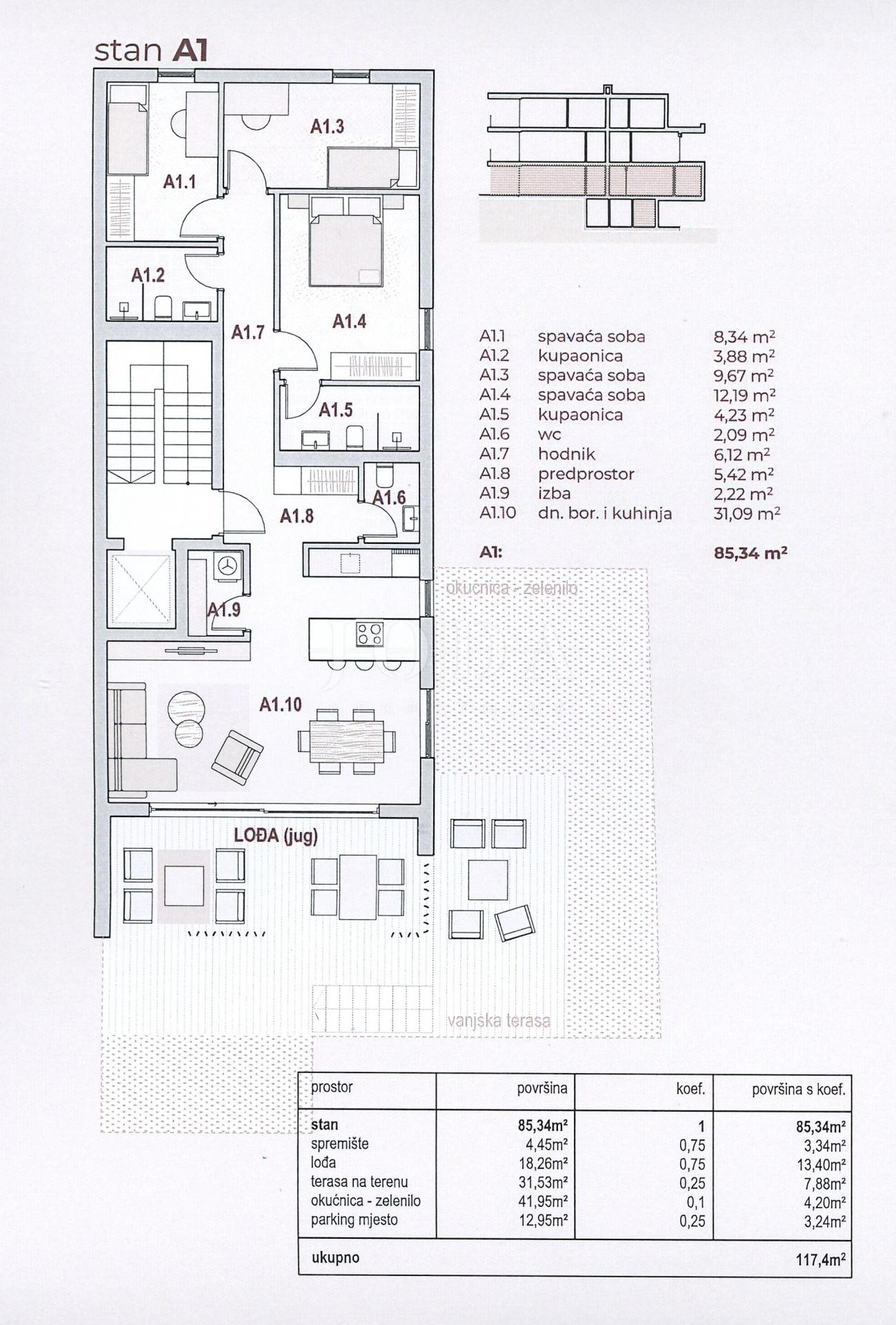 Plocha apartmánů se pohybuje od 70 m² do 120 m².