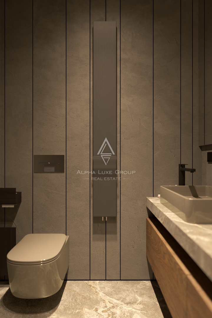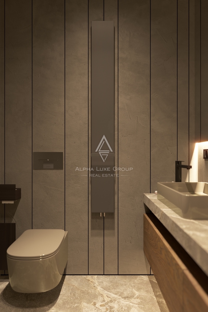 - Koupelny: Kromě tří koupelen zahrnuje byt také samostatné WC pro hosty.