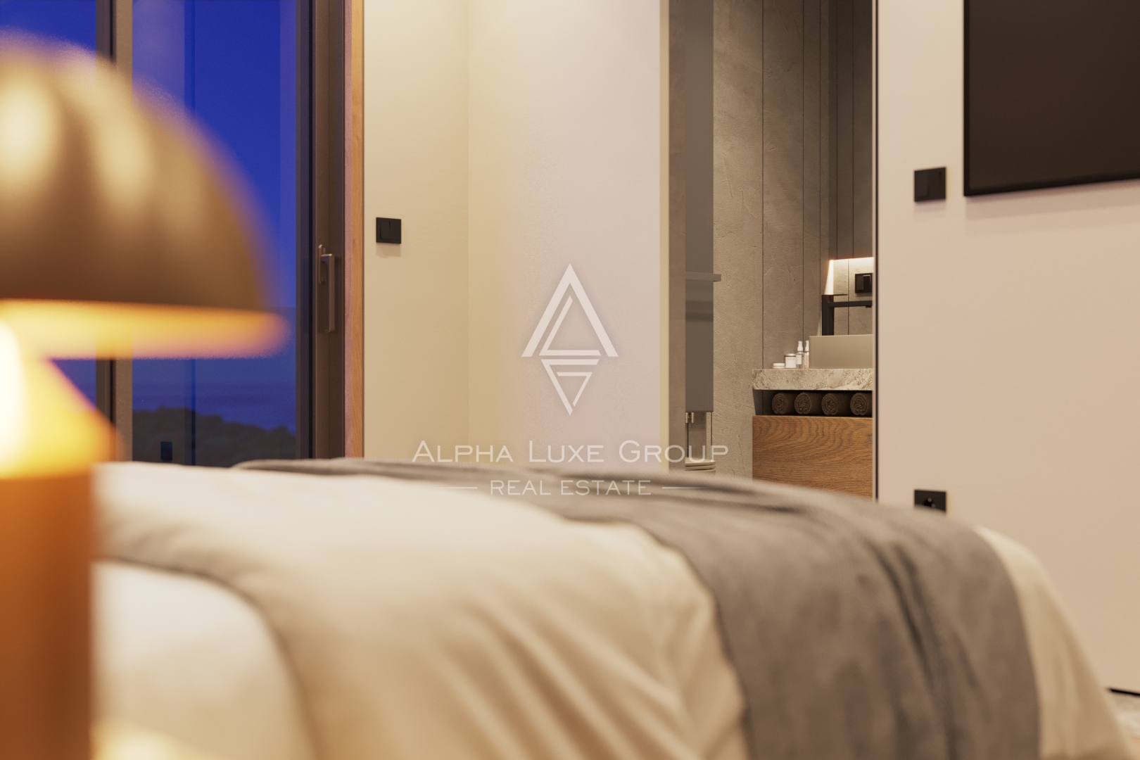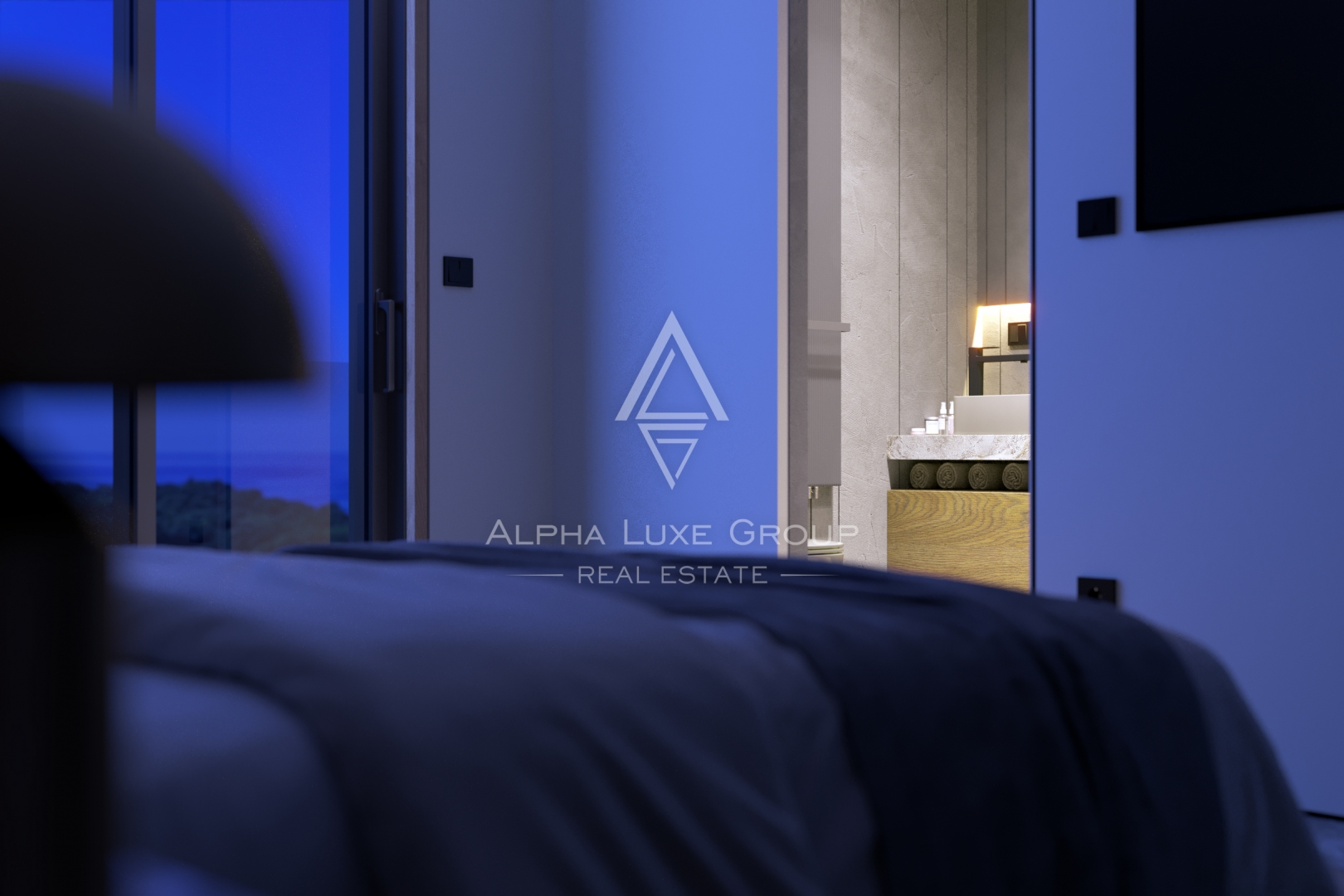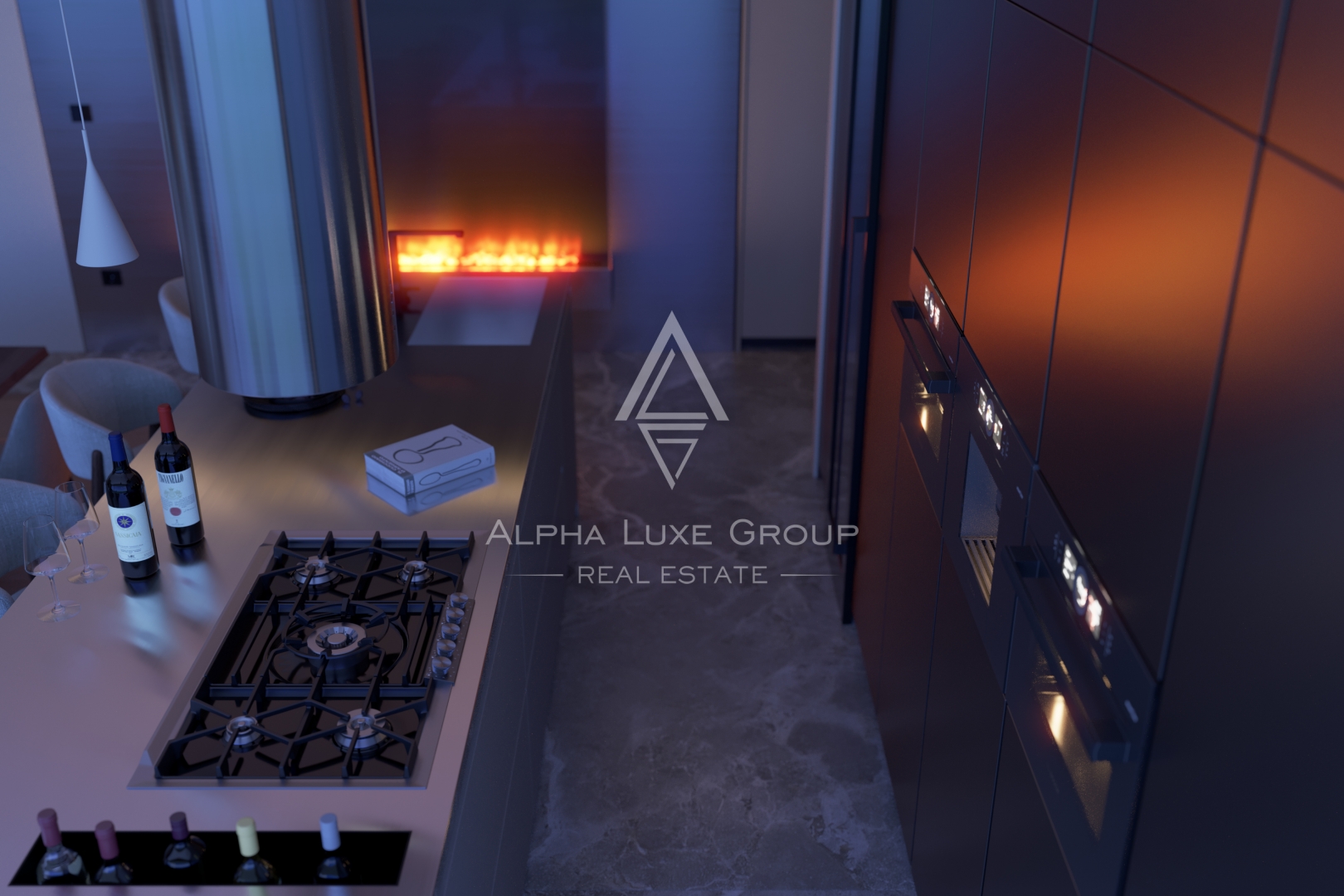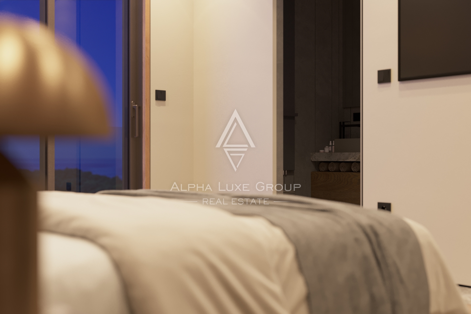- Důraz na detail: Interiérové dveře vysoké 240 cm se skrytými panty, hliníková okna na míru, elektrické žaluzie a architektonicky řešené osvětlení interiéru i exteriéru.