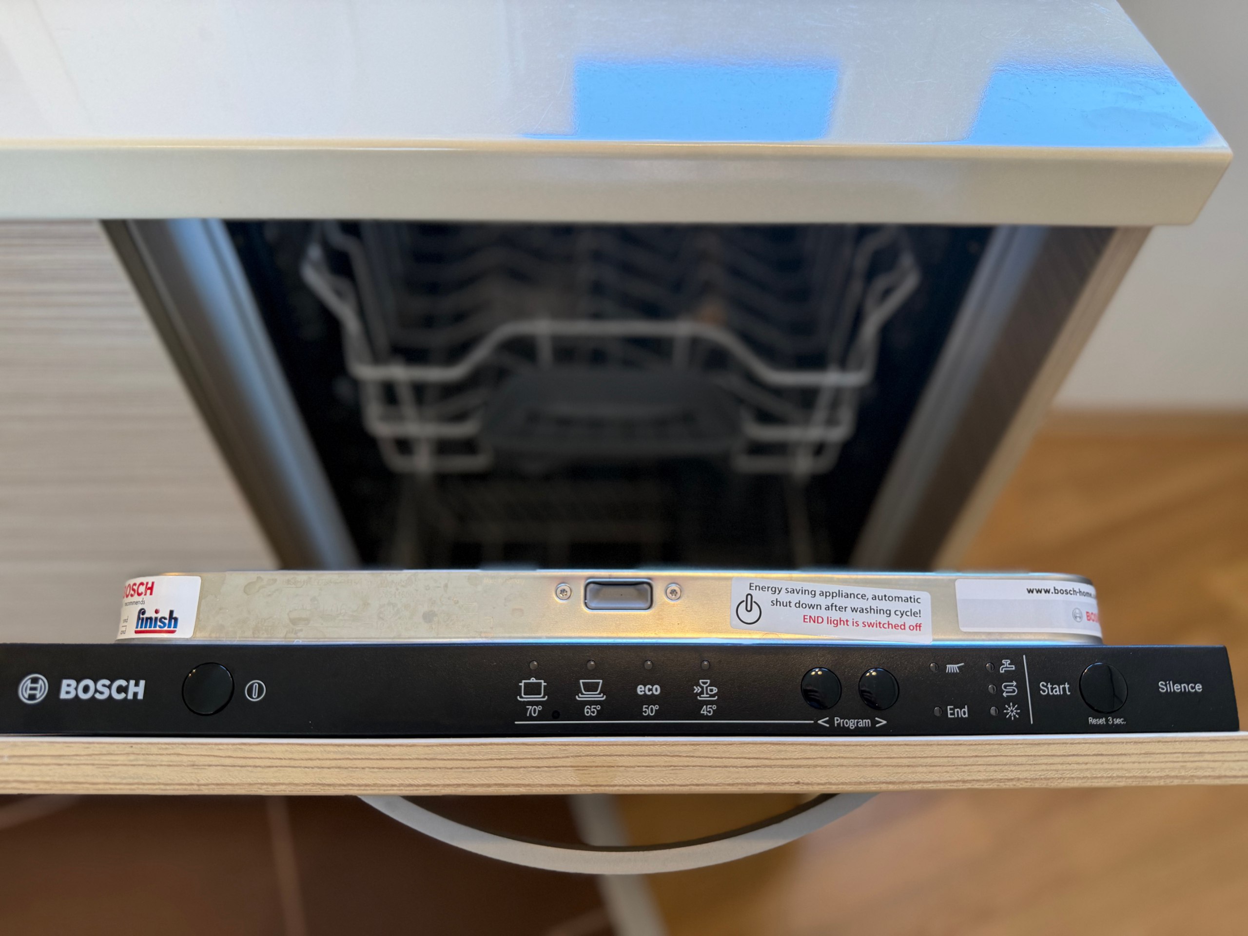 - Kuchyně: Vybavena moderním nábytkem a vestavěnou myčkou nádobí.