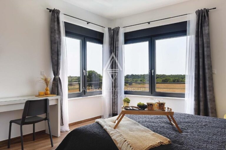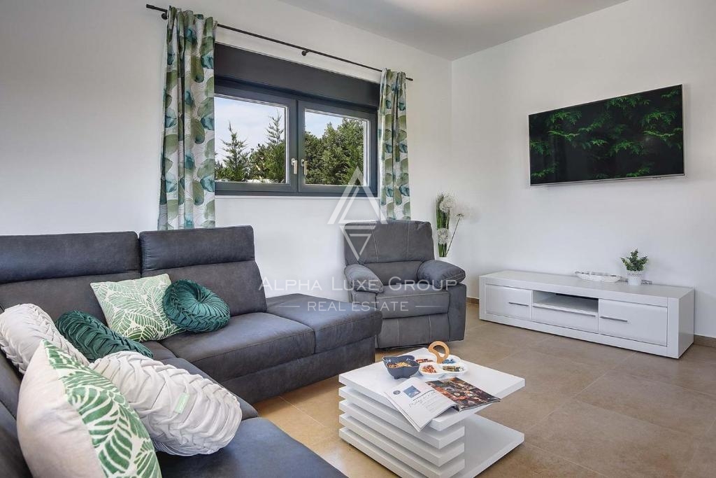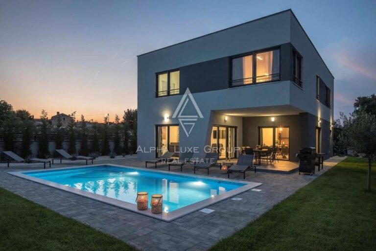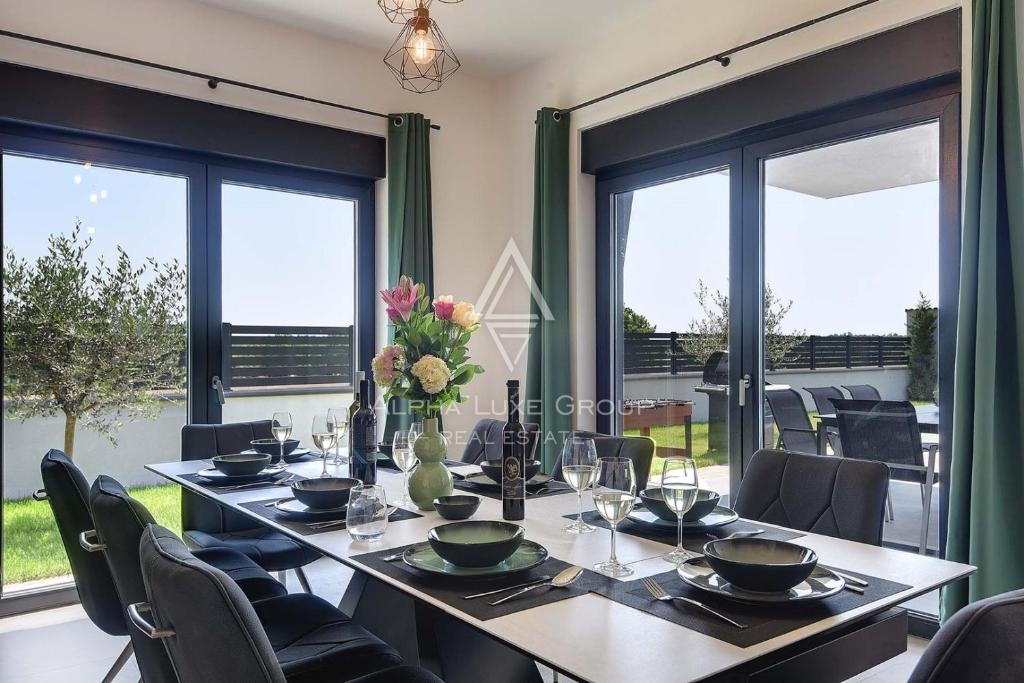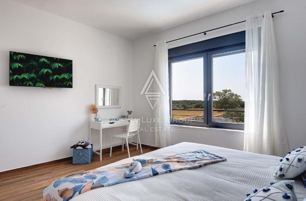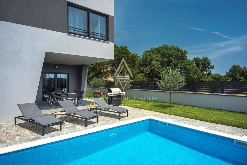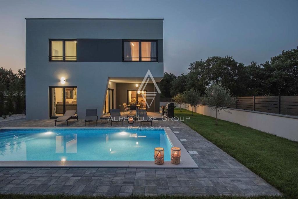 Na prodej je moderní nový dům o rozloze 180 m² netto, který se nachází v klidné vesnici nedaleko Puly na pozemku o rozloze 550 m². Nachází se na samém okraji stavební zóny, a proto poskytuje zvláštní pocit soukromí, klidu a svobody. Obklopen zelení a zemědělskou půdou a jen pár minut jízdy od centra města a moře, tato nemovitost kombinuje to nejlepší ze dvou světů: ticho přírody a blízkost veškeré občanské vybavenosti.