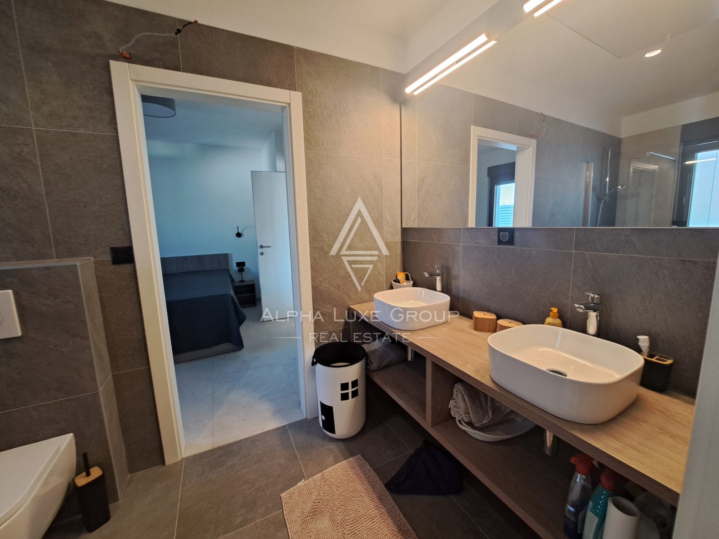 Predstavujeme výnimočne modernú vilu pri Poreči, ktorá sa nachádza na okraji stavebnej zóny v pokojnej a vyhľadávanej oblasti. Táto nehnuteľnosť je obklopená malebnými olivovníkmi, čo jej dodáva pravú stredomorskú atmosféru a zaručuje maximálne súkromie.
