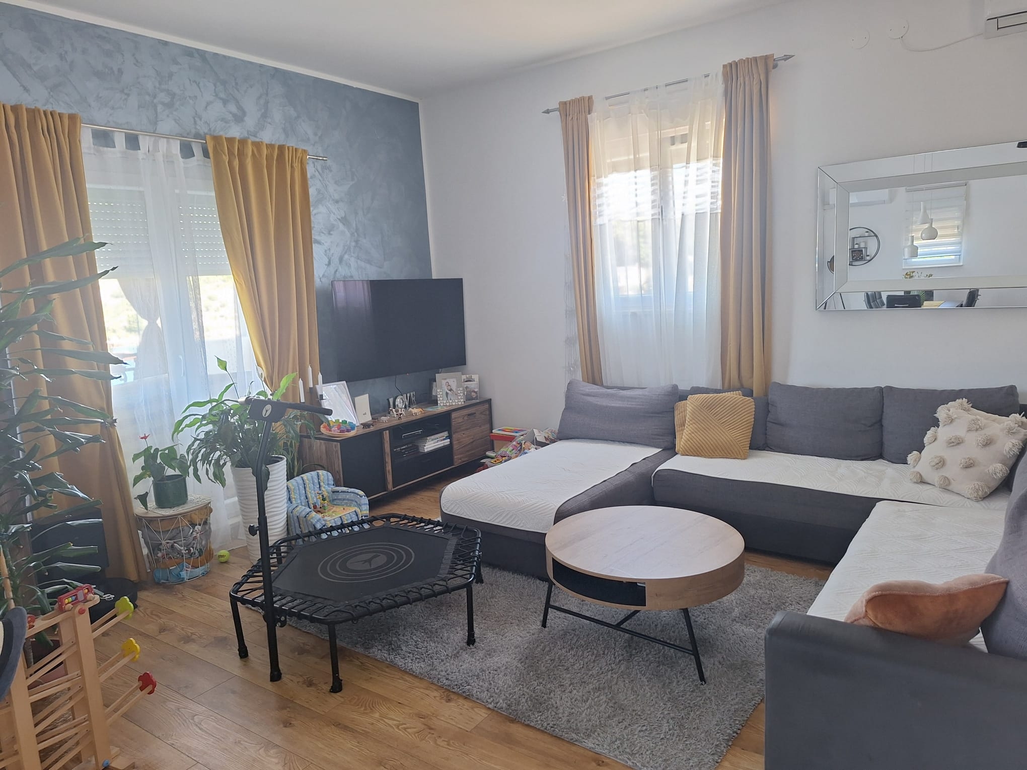 Dům je rozdělen na dva samostatné byty, což nabízí flexibilní možnosti využití.