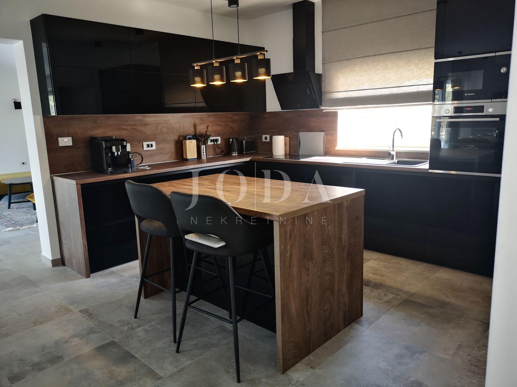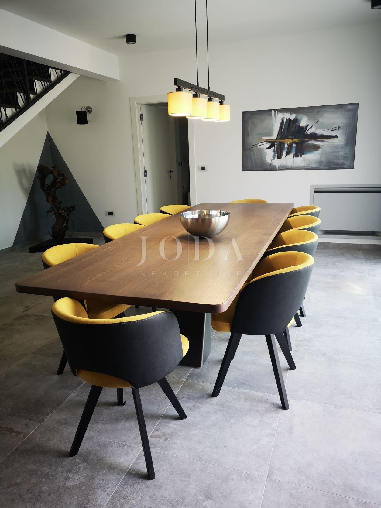 Tento nádherný luxusní dům se nachází v malebné oblasti Labinu, obklopený svěží zelení a nabízející úchvatný otevřený výhled na pohoří Učka a historické staré město Labin.
