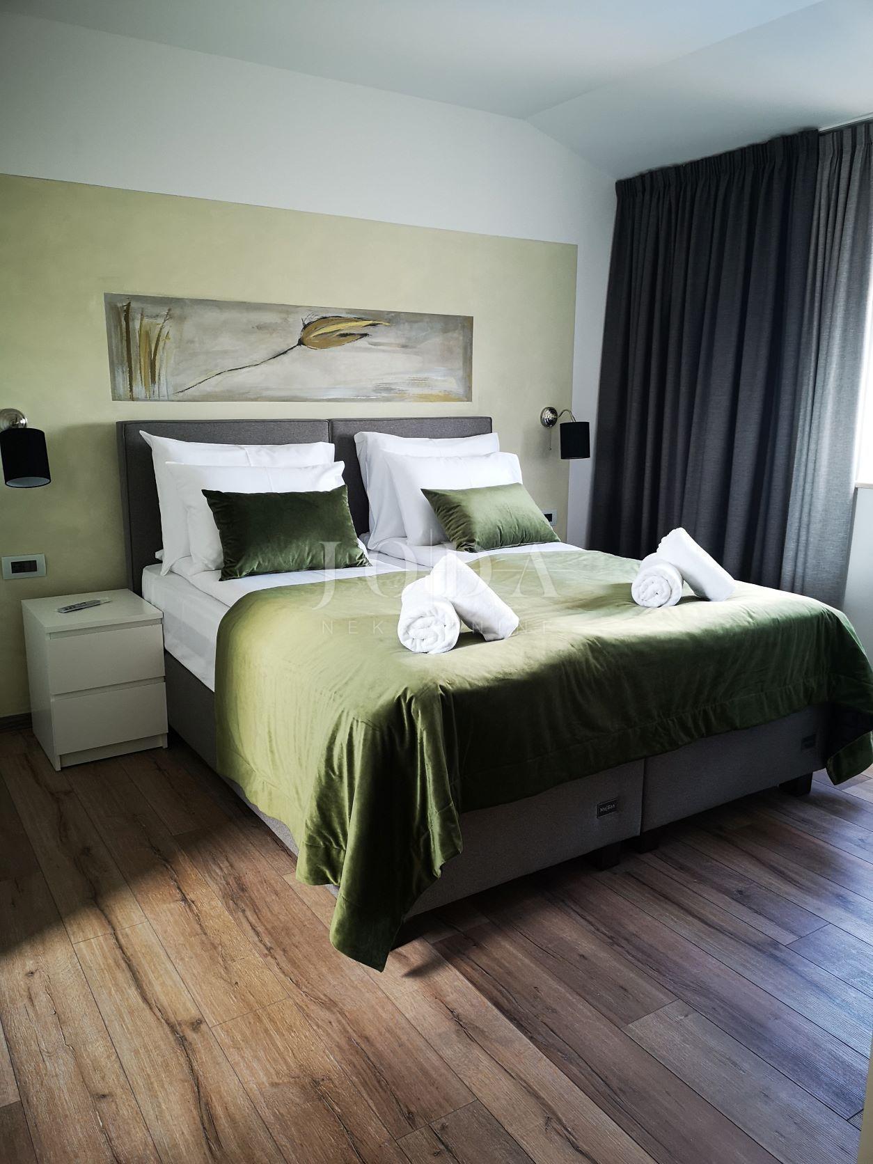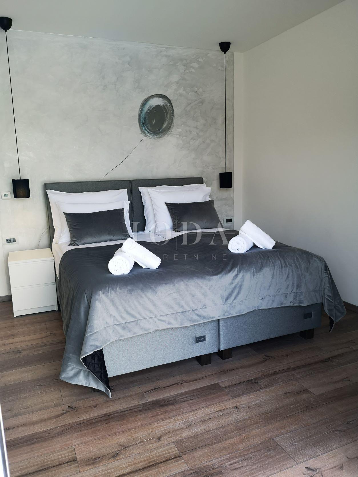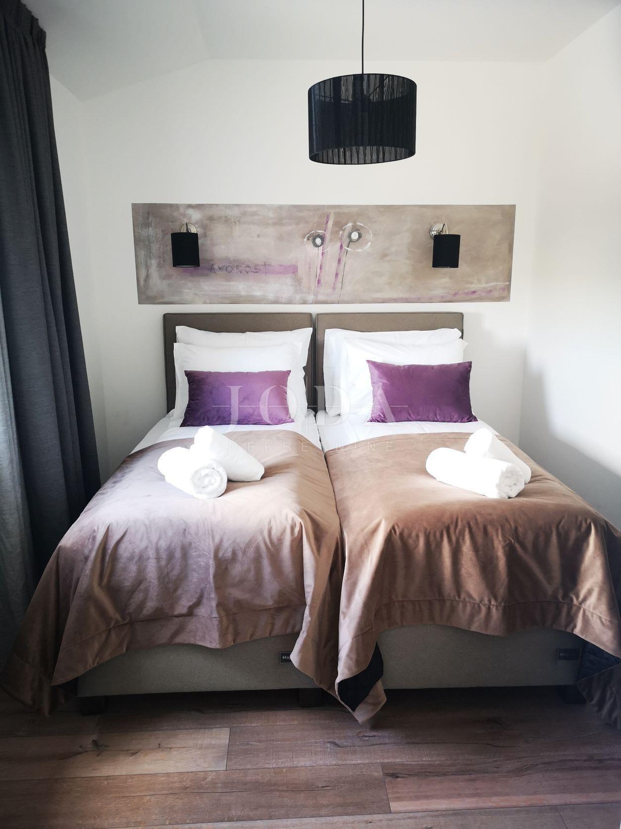 Jeden z pokojů má navíc přístup na terasu, která je ideální pro vychutnání ranní kávy s nádherným výhledem. Vedle této prostorné terasy se nachází moderní letní kuchyně, obklopená pečlivě udržovaným zeleným trávníkem.
