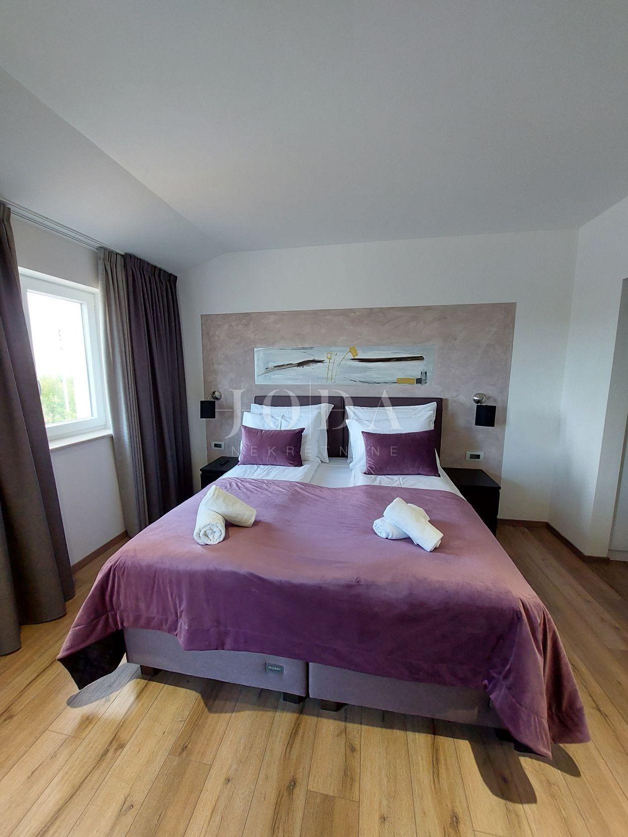 Všechny tyto místnosti mají přímý přístup na vkusně zařízenou terasu s bazénem. Bazén je vybaven tepelným čerpadlem, což umožňuje jeho celoroční užívání.
