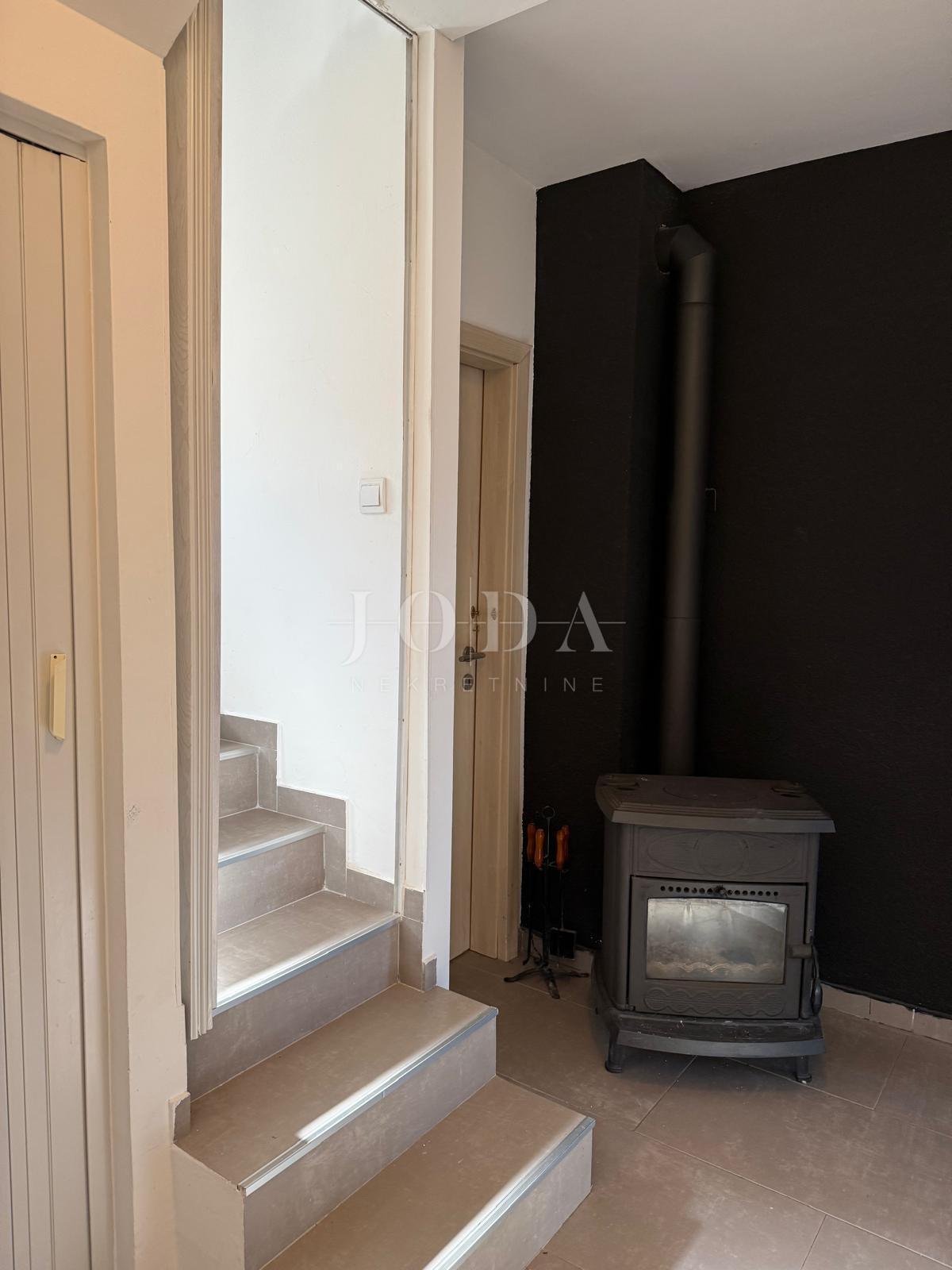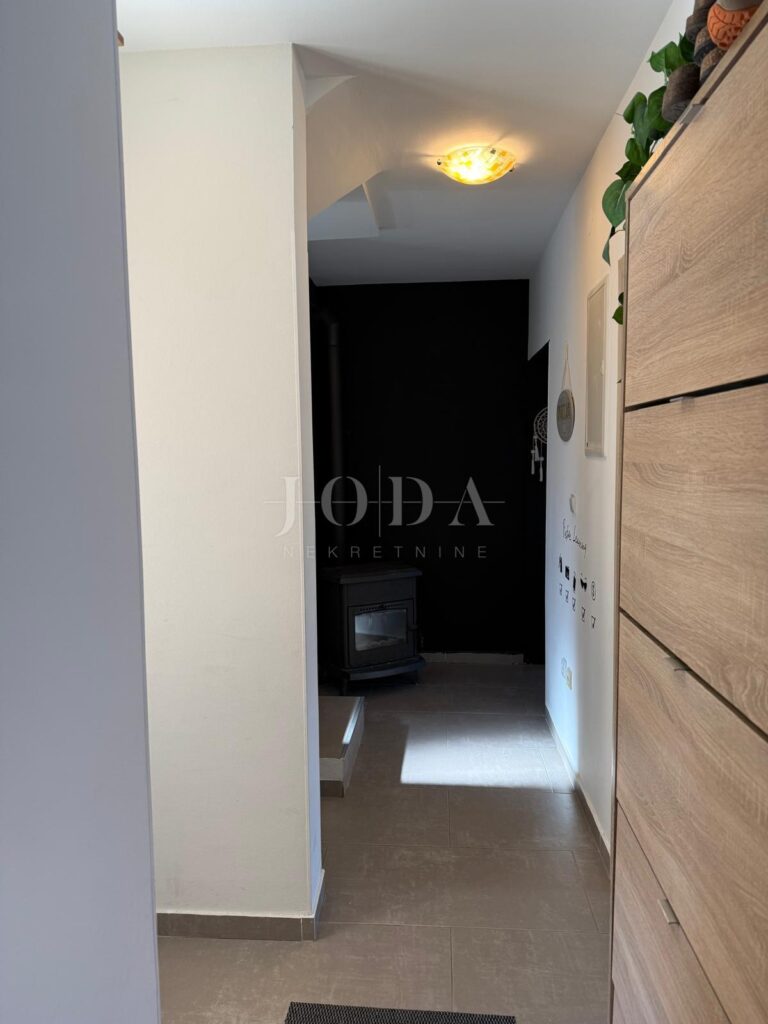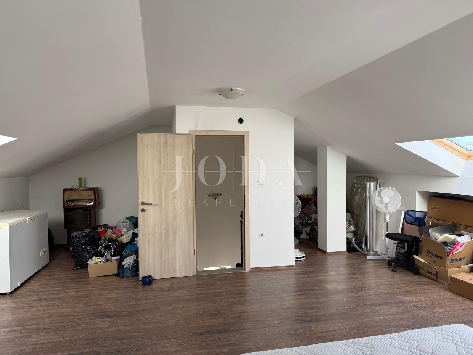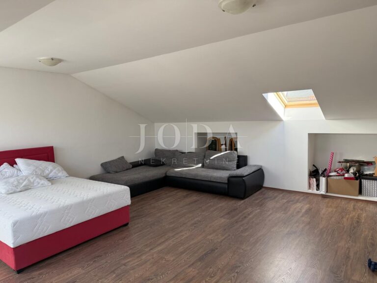 Vnitřní schodiště vede do prvního patra, které skýtá velký potenciál. Zde je možné vytvořit další byt o dispozici 1+kk s obývacím pokojem. Tento prostor má dobrou výšku stropu a je vybaven střešním oknem, což zaručuje světlost a vzdušnost.