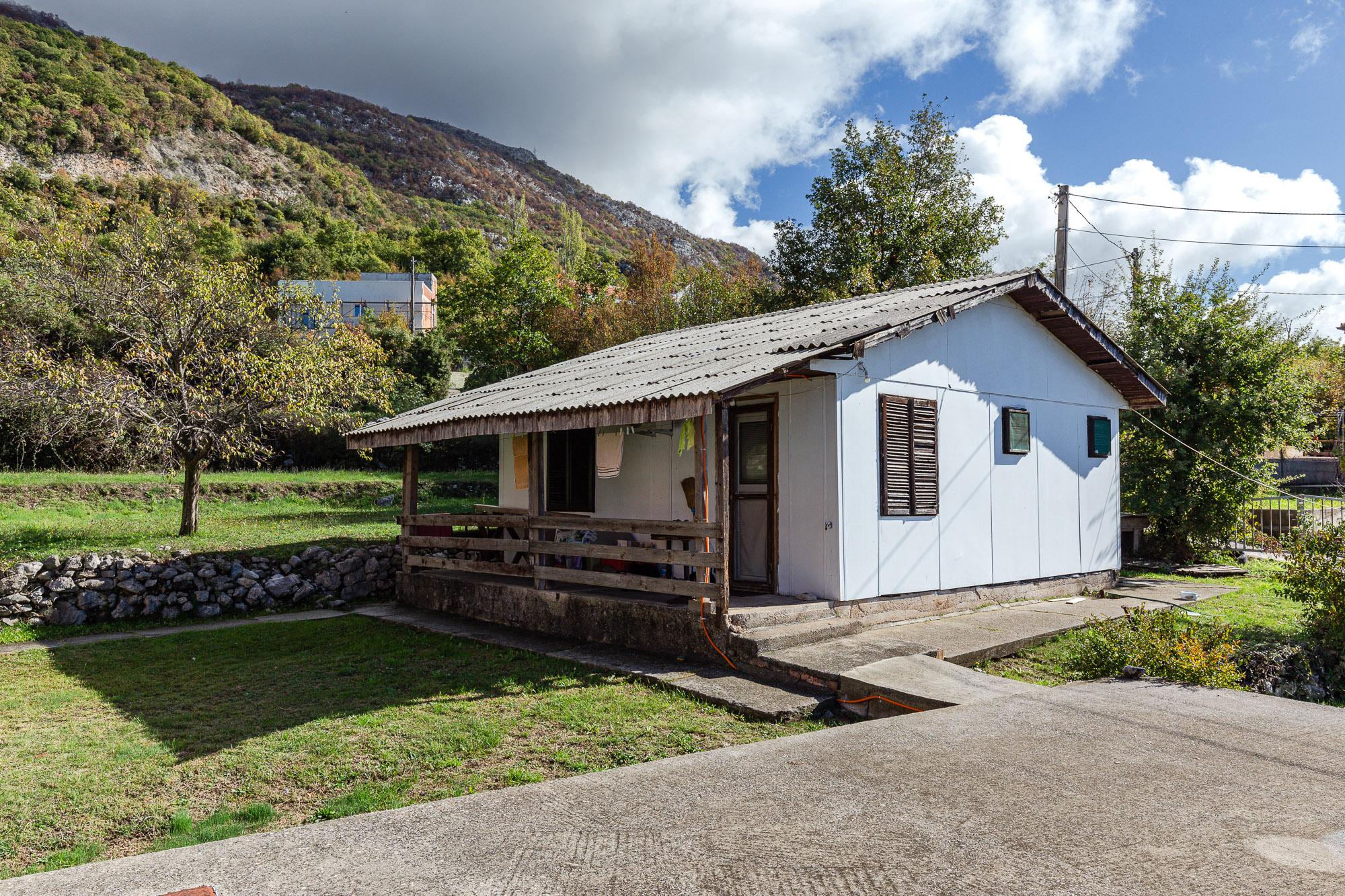 Součástí pozemku je modulární dům o rozloze 60 m², vhodný jako dočasné ubytování během výstavby nebo jako pomocná budova.