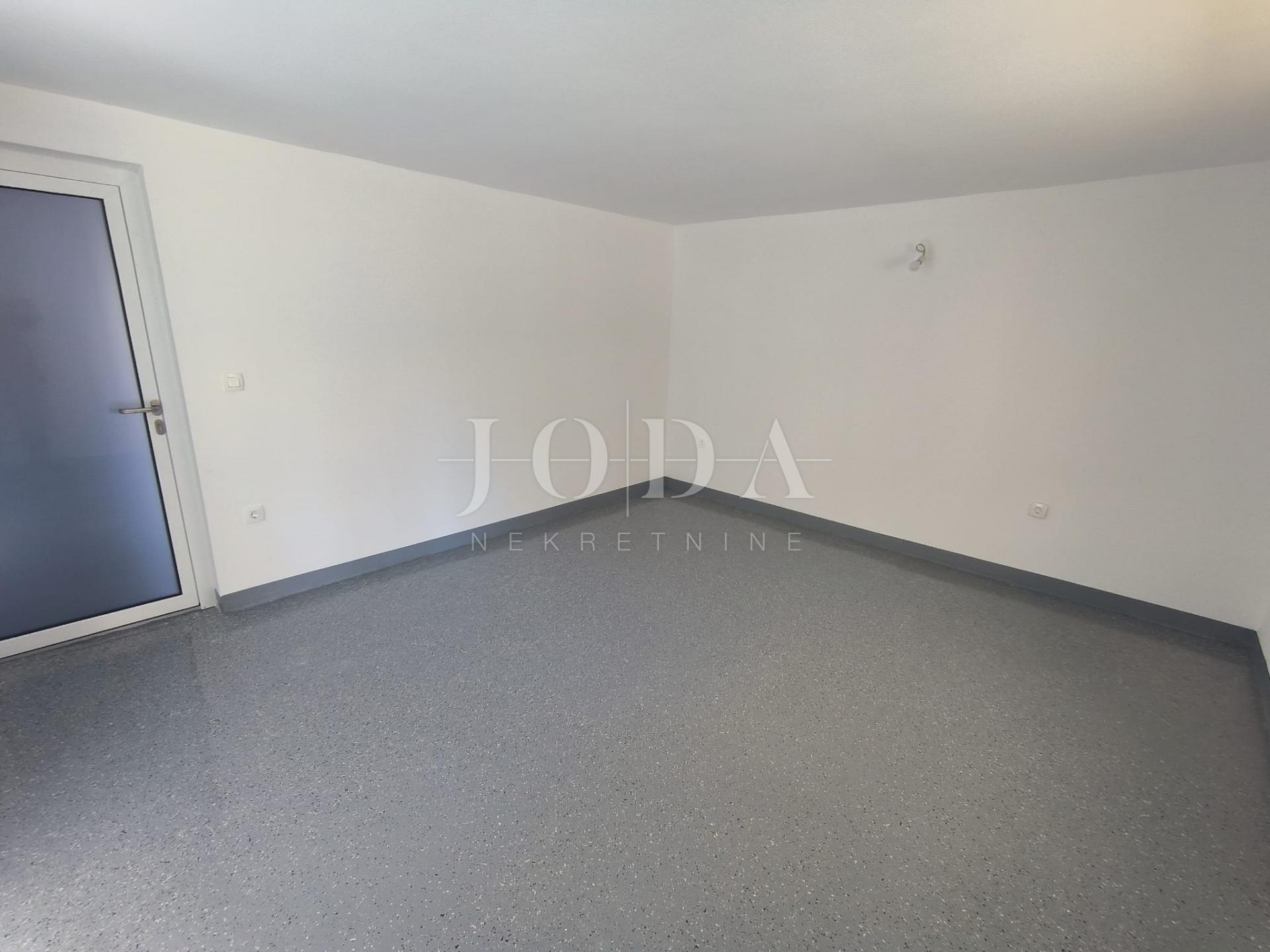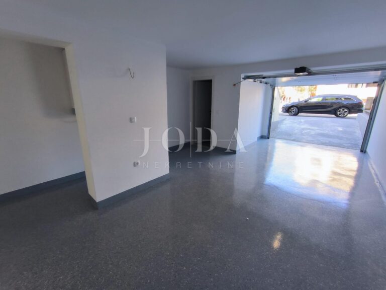 K bytu náleží garáž v suterénu, která poskytuje bezpečné parkování. Dále se v suterénu nachází velká místnost s toaletou, kterou je možné využít jako další pokoj, obývací pokoj/kuchyň. Z této místnosti je možný přímý výstup na zahradu.